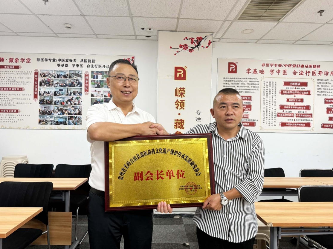 最后,李會長與本校談成合作,并授予我們張校長《貴州關嶺縣苗醫(yī)苗藥文化遺產保護傳承發(fā)展協(xié)會》副會長稱號,后期我們將不負李會長的信任。展望未來,我們堅信,《關嶺民族醫(yī)生執(zhí)業(yè)證書》將持續(xù)展現(xiàn)其重要價值,引領民間中醫(yī)走向更加規(guī)范、專業(yè)的發(fā)展道路。