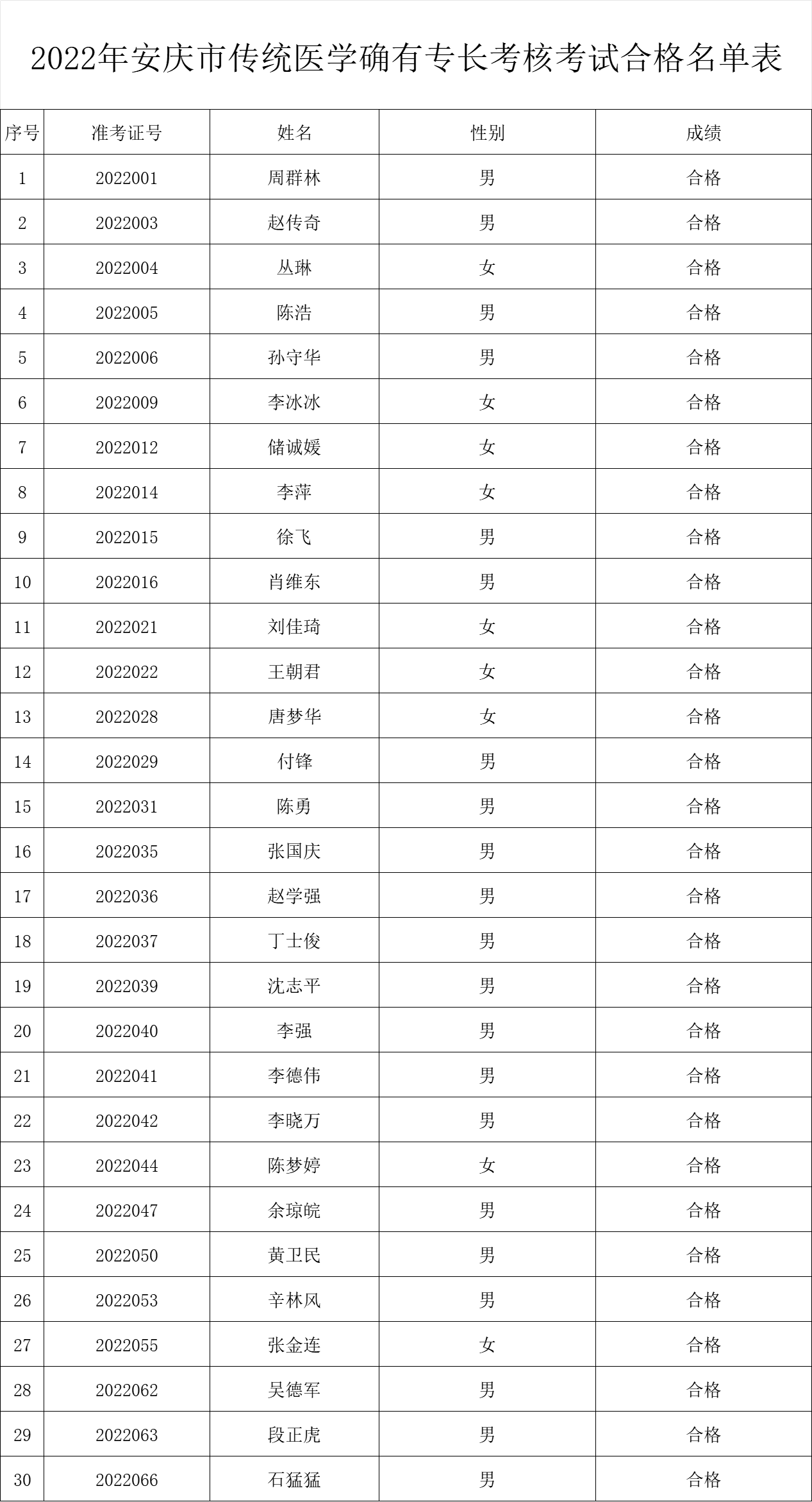 2022年安慶市傳統(tǒng)醫(yī)學(xué)確有專(zhuān)長(zhǎng)考核考試合格名單表.xlsx