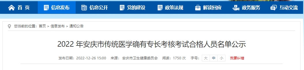 2022 年安慶市傳統(tǒng)醫(yī)學(xué)確有專(zhuān)長(zhǎng)考核考試合格人員名單公示