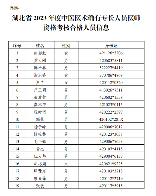 2022年度湖北省中醫(yī)專長醫(yī)師考核合格人員名單公布(15號令)
