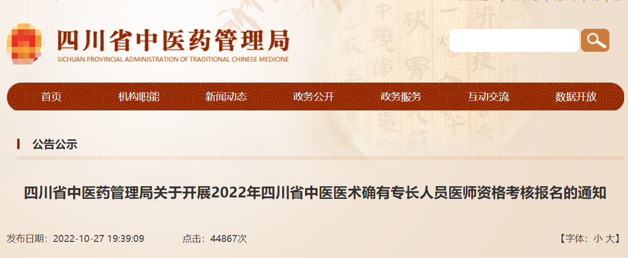 根據(jù)《中醫(yī)醫(yī)術(shù)確有專長人員醫(yī)師資格考核注冊管理暫行辦法》和《四川省中醫(yī)醫(yī)術(shù)確有專長人員醫(yī)師資格考核注冊管理實施細(xì)則(暫行)》的規(guī)定,現(xiàn)將四川省2022年中醫(yī)醫(yī)術(shù)確有專長人員醫(yī)師資格考核報名事項通知如下。