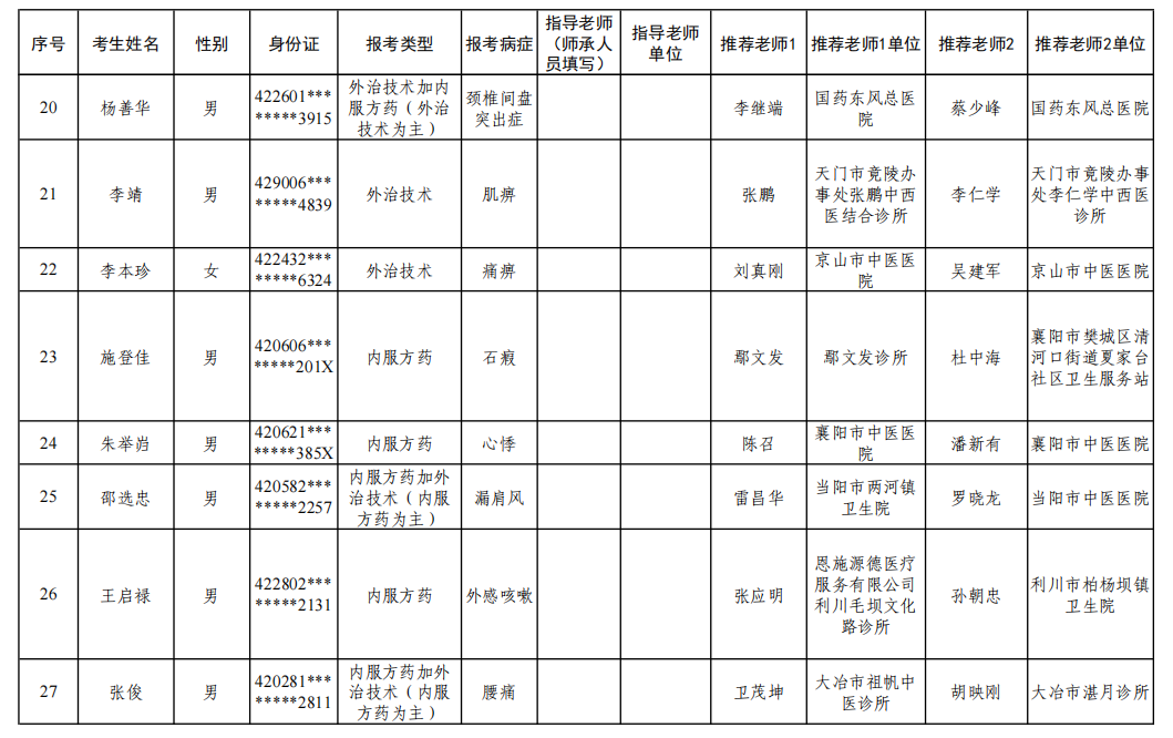 關(guān)于2023年度湖北省中醫(yī)醫(yī)術(shù)確有專長人員醫(yī)師資格考核符合報名條件人員信息的公示