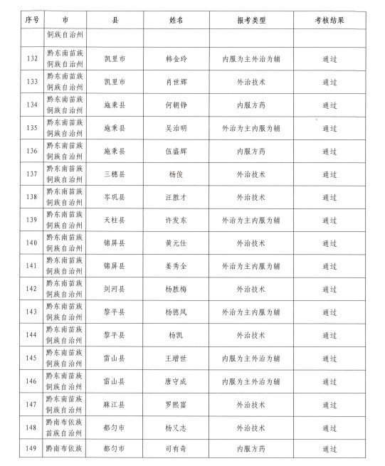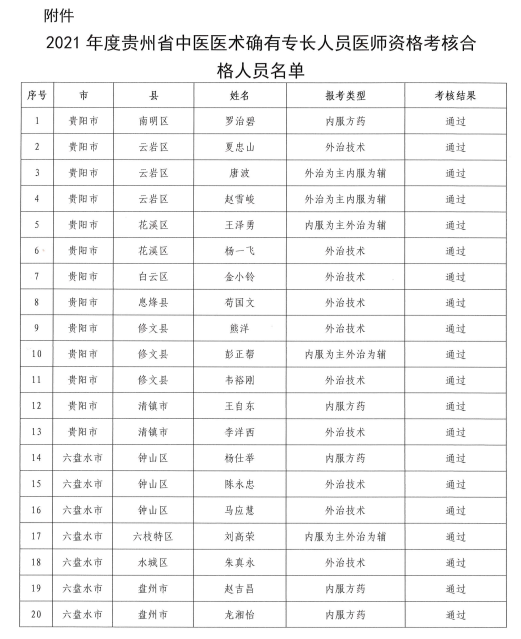 2021年度貴州省中醫(yī)醫(yī)術(shù)確有專長(zhǎng)人員醫(yī)師資格考核合格名單的公示