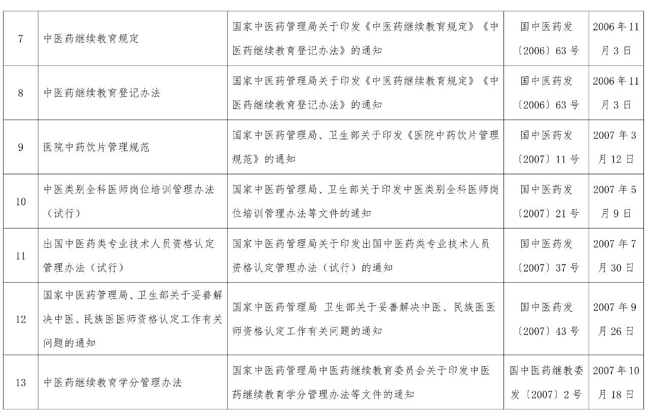 國家中醫(yī)藥管理局關(guān)于公布現(xiàn)行有效和決定廢止的行政規(guī)范性文件目錄的通告