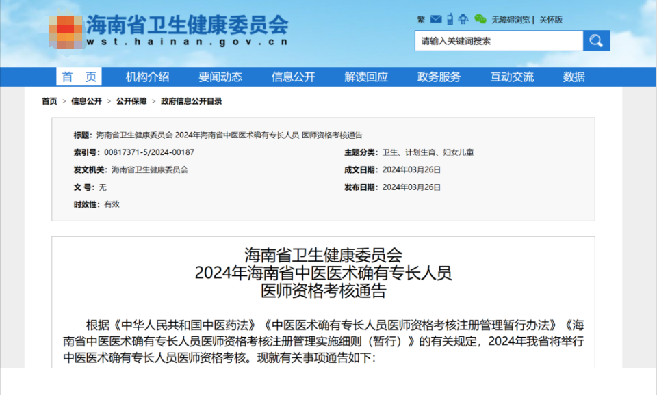 根據(jù)《中華人民共和國中醫(yī)藥法》《中醫(yī)醫(yī)術(shù)確有專長人員醫(yī)師資格考核注冊(cè)管理暫行辦法》《海南省中醫(yī)醫(yī)術(shù)確有專長人員醫(yī)師資格考核注冊(cè)管理實(shí)施細(xì)則(暫行)》的有關(guān)規(guī)定,2024年我省將舉行中醫(yī)醫(yī)術(shù)確有專長人員醫(yī)師資格考核。現(xiàn)就有關(guān)事項(xiàng)通告如下: