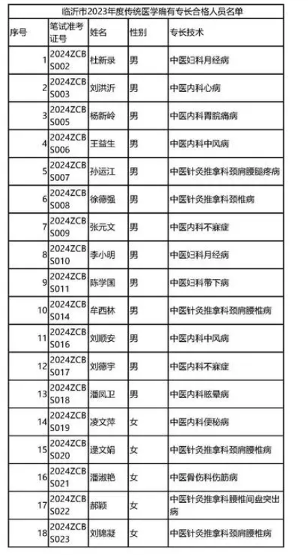 臨沂市2023年傳統(tǒng)醫(yī)學(xué)醫(yī)術(shù)確有專長(zhǎng)人員考核結(jié)果公示