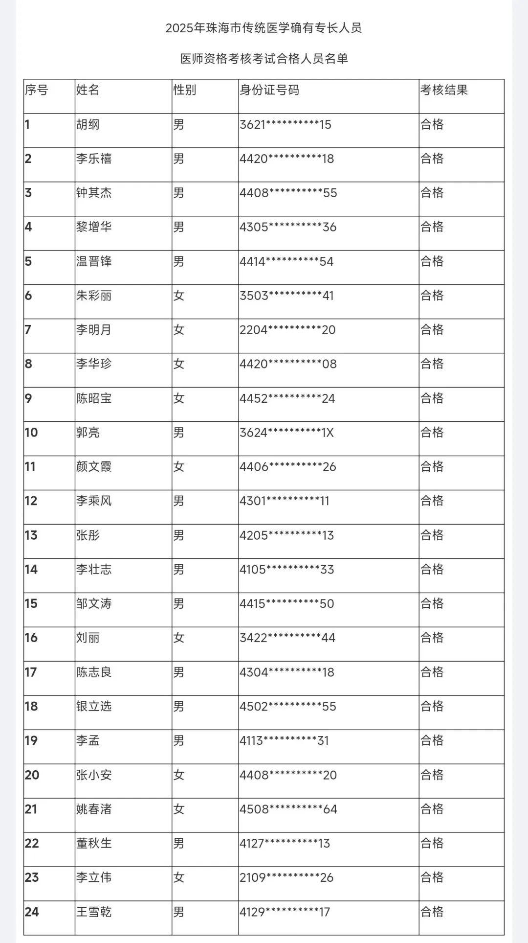 附件:2025年珠海市傳統(tǒng)醫(yī)學確有專長人員醫(yī)師資格考核考試合格人員名單