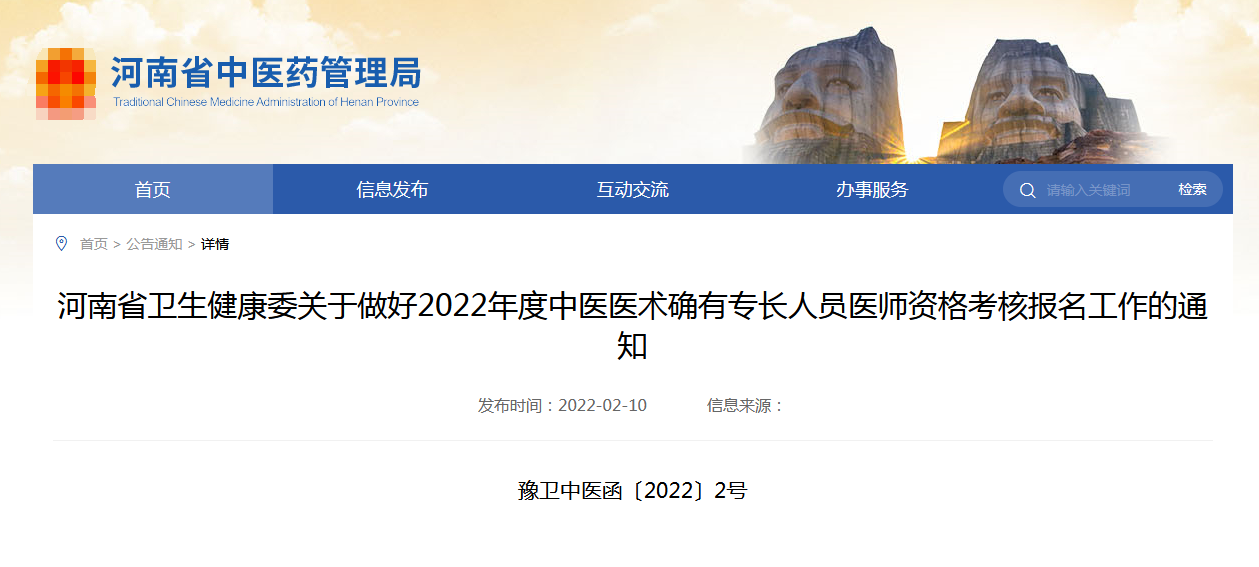 河南省衛(wèi)生健康委關(guān)于做好2022年度中醫(yī)醫(yī)術(shù)確有專長人員醫(yī)師資格考核報名工作的通知