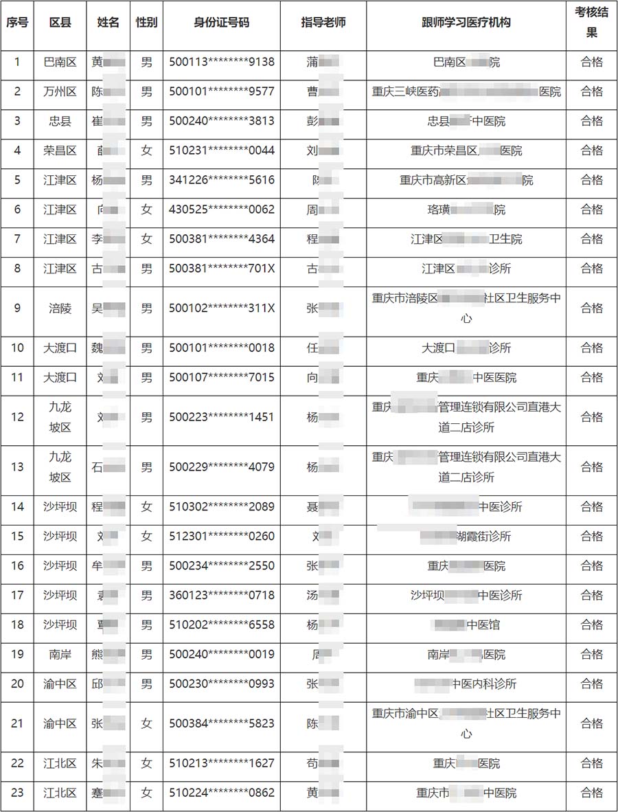 通過率較往年偏低。恭喜以下23位重慶師承同道,也希望未通過考試的中醫(yī)同道再接再厲!