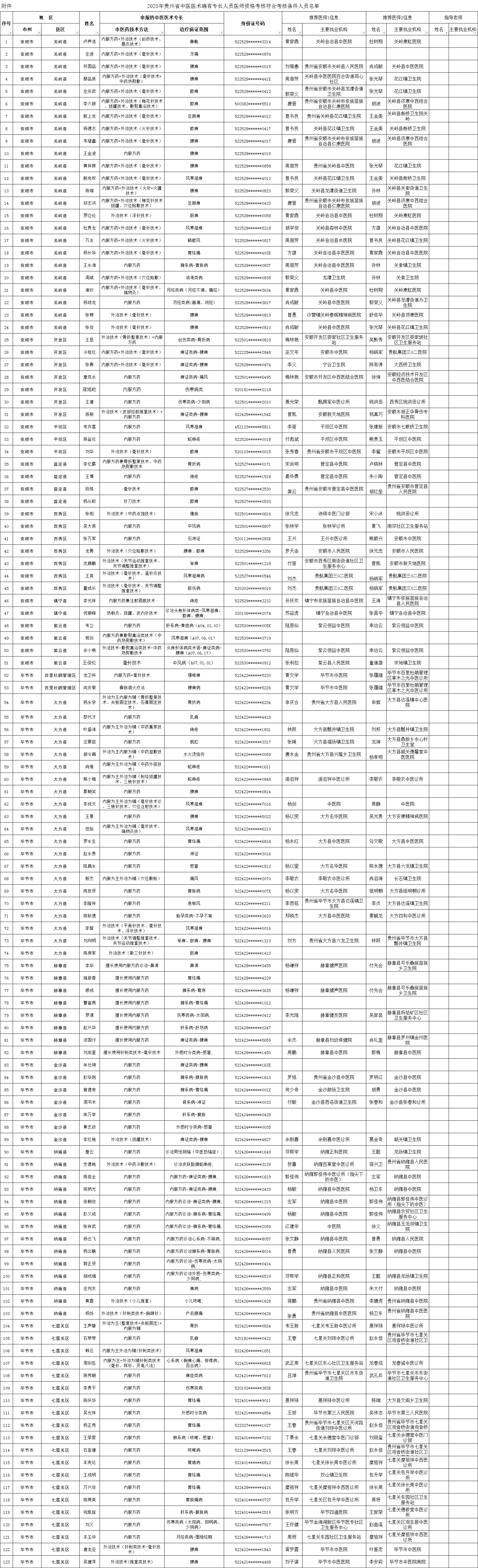 根據(jù)《中醫(yī)醫(yī)術(shù)確有專長人員醫(yī)師資格考核注冊管理暫行辦法》(國家衛(wèi)生和計劃生育委員會令第15號)和《貴州省中醫(yī)醫(yī)術(shù)確有專長人員醫(yī)師資格考核注冊管理實施細(xì)則(暫行)》(黔衛(wèi)健發(fā)〔2018〕3號)有關(guān)規(guī)定,現(xiàn)已完成全省中醫(yī)醫(yī)術(shù)確有專長人員醫(yī)師資格考核報名資料縣級初審、市級復(fù)審及省級審核工作。經(jīng)審核,共有712人符合考核條件,現(xiàn)予公示(詳見附件)。
