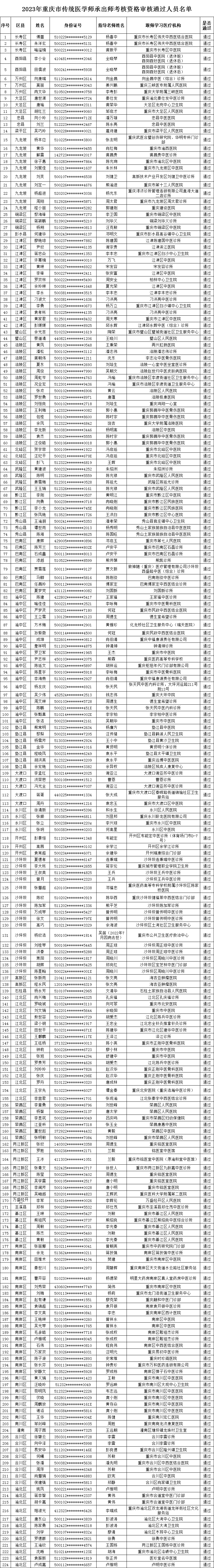 重慶市衛(wèi)生健康委員會(huì)關(guān)于2023年重慶市傳統(tǒng)醫(yī)學(xué)師承出師考核資格審核通過人員名單的公示