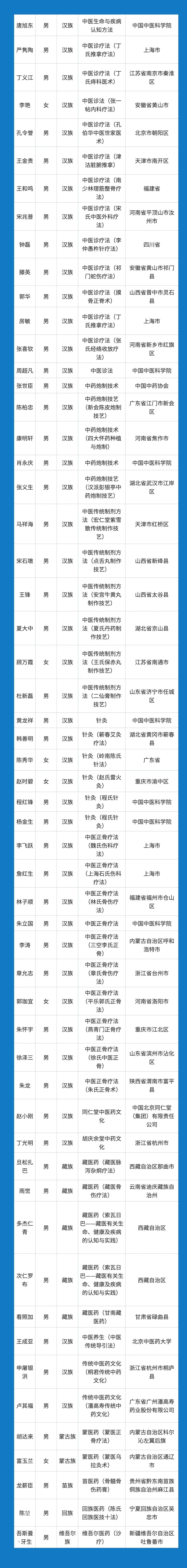 近日,文化和旅游部官網(wǎng)公示第六批國家級非物質(zhì)文化遺產(chǎn)代表性傳承人推薦人選名單,共958人,唐旭東、嚴(yán)雋陶、丁義江等56名傳統(tǒng)醫(yī)藥非遺項目代表性傳承人在列。